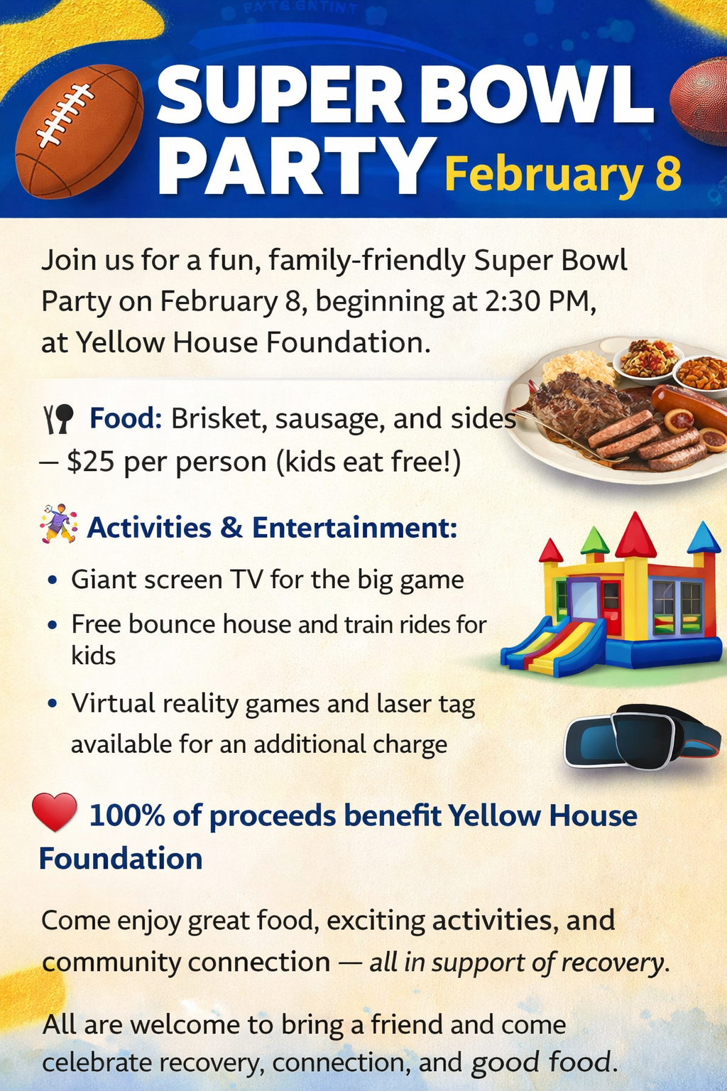 The Yellow House Foundation is a nonprofit based in Leander, Texas, providing a safe and permanent space for 12-Step recovery meetings. Entirely volunteer-run and funded by donations, we support over 2,500 meetings each year for individuals and families affected by substance abuse in Williamson County and the Greater Austin area.